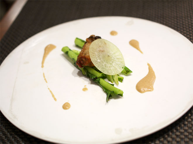 茎のほうにはちょっとぬめりがあって、うるいのような感じも。 ソースはバルサミコだったっけ?? 記憶があいまい。