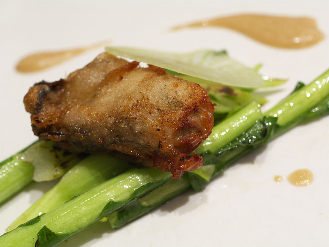 下の菜っ葉が香りと食感がよろしい、そしてパートブリックで揚げたカキにも当然ながら、いいアクセントに。