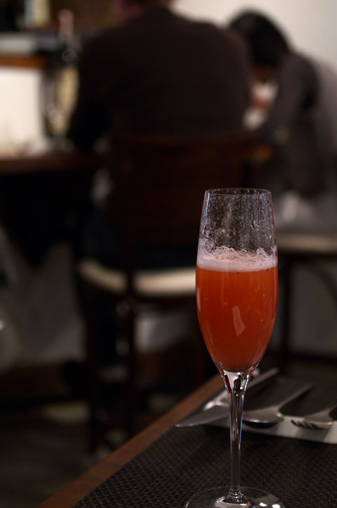 上の写真は、イチゴのピューレを混ぜたもので1200円。 イチゴということで案外甘いかと思いきや、シャープな味わいで。