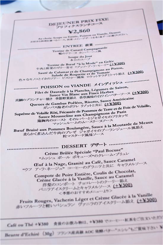 ランチのプリフィックスメニューから。 残念ながらプラスαが多いです。