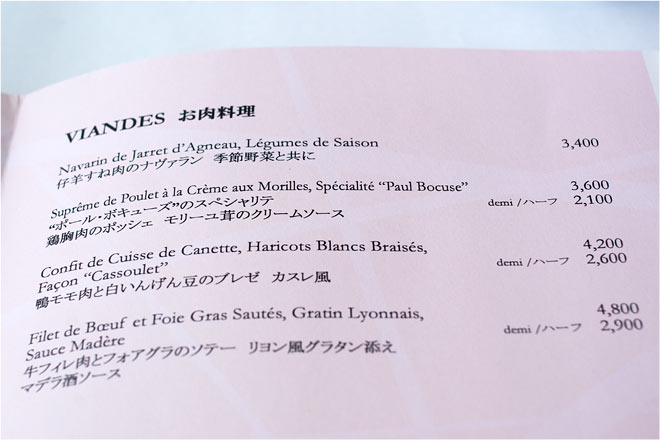 こちらはアラカルト。 私的にはハーフポーションがあるのでうれしいです。