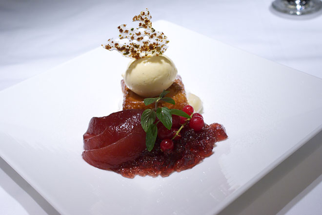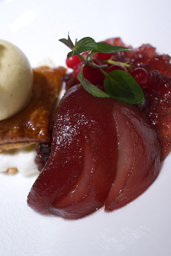 洋梨のコンポート カシス風味とヨーグルトムースのミルフィーユ