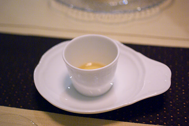干しダラと白いんげん豆をペーストにして、かりっと焼いたものという説明でしたが、柔らかいたらの身質に下にはかりっとした食感がアクセントになっており、