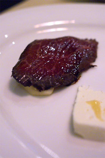 その下には、スペインはアルバ産のフレッシュチーズに、ブラックベリーのはちみつをかけたもの。