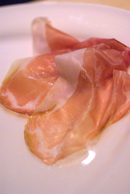 生ハムとはいいつつ、生ハムよりかなり厚めにスライスされており、肉の旨みを堪能できます。