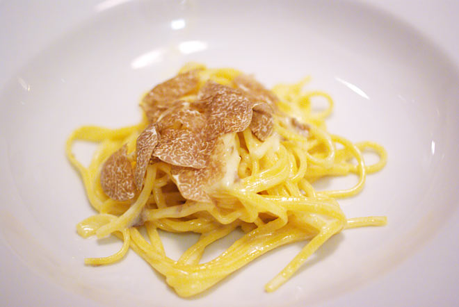 白トリュフの料理としては、先のポーチドエッグとこのパスタが圧倒的に。