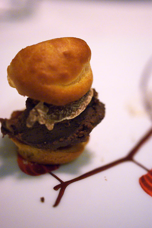 今回は野鴨のパテ、紅玉のジャム、アルバ産白トリュフをシューではさんだものと、