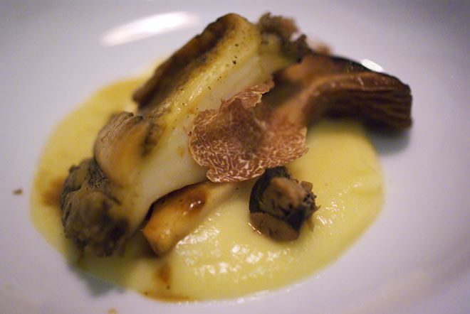 むんとしたトリュフの香りがふんわりと。 身厚に切られたあわびと歯ごたえの心地よいエリンギ。