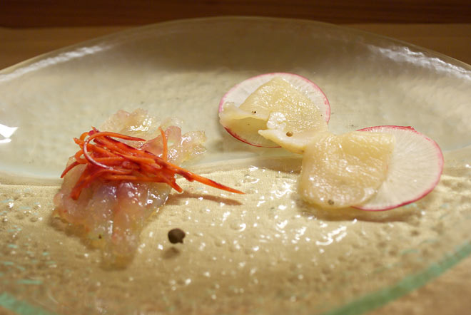 鯛はちょっと熟成が進んだようなややとろっとした食感。 その分旨みは増して。