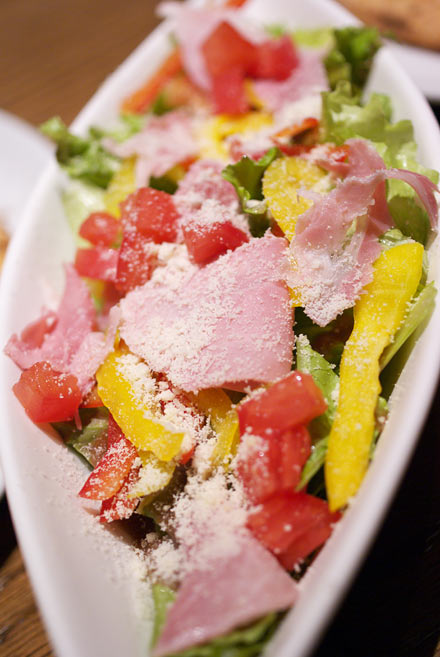 ハム、トマト、パプリカをバルサミコビネガーベースで、チーズたっぷり。