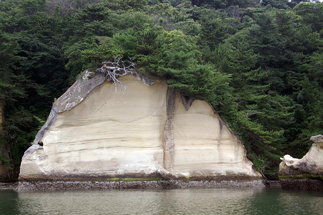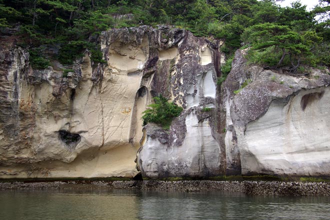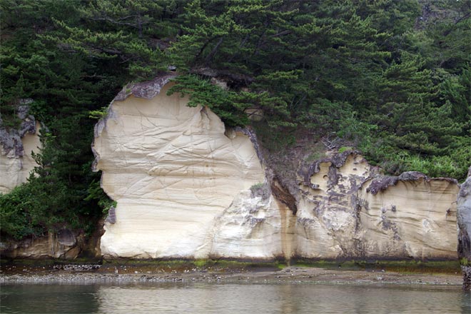 外洋に出ると左下の先端の嵯峨渓にまで観光船で行くのですが、今回は湾内の左のほうをぐるっと回ってきました。