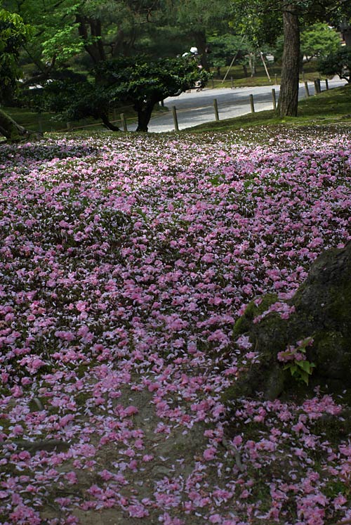何の花でしょうか? 一面に散った後を。