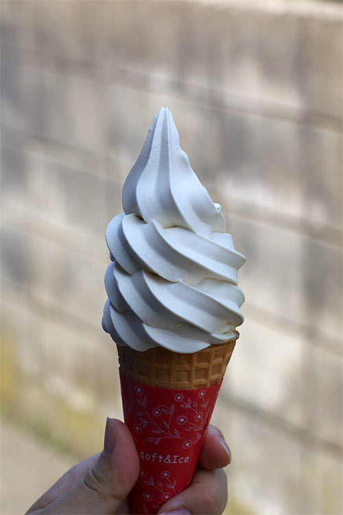 こちらが、その醤油ソフトクリーム。 ちょっと分かりにくいですが、色合いにはわずか醤油の紫がほんのりと。