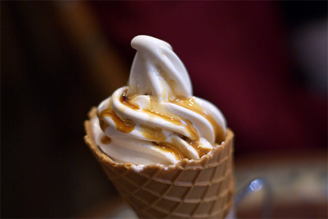 こちらは玄米ソフトクリーム。 アイスクリーム用の醤油をかけていただきましたが、うーん、、それほどの印象はなし。