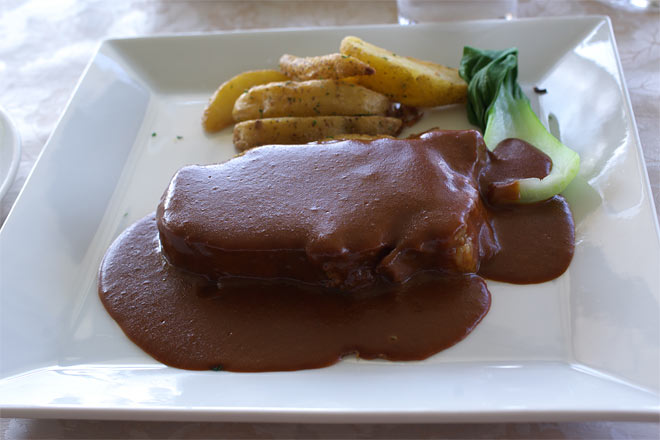 肉厚のタンはほろほろと崩れる火のとおり。 ソースは市販のデミグラスなんでしょうか? まずまず。