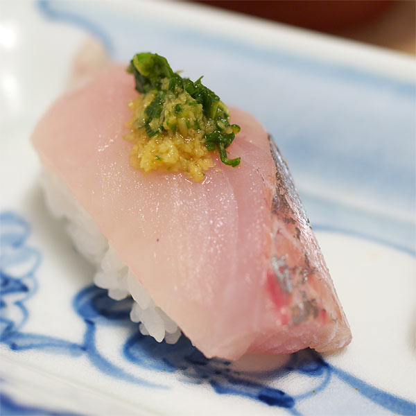 アジ(地もの)と青柳。 前回、青魚の好印象はがっかりな感じに。 季節もあるのかな、、