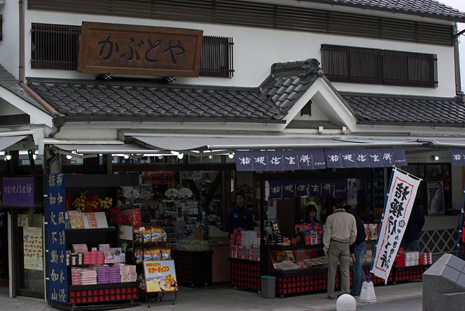 目の前には信玄餅が売ってます。 皆さん、観光バスで来るのかな?