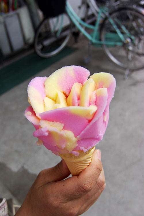 注文すると、上の写真のようにアイスを盛ってくれますが、写真のようなスタイル。 上記の参考ページで技により、多少形が違うそうですが・・・まあ、味は変わりません(笑)