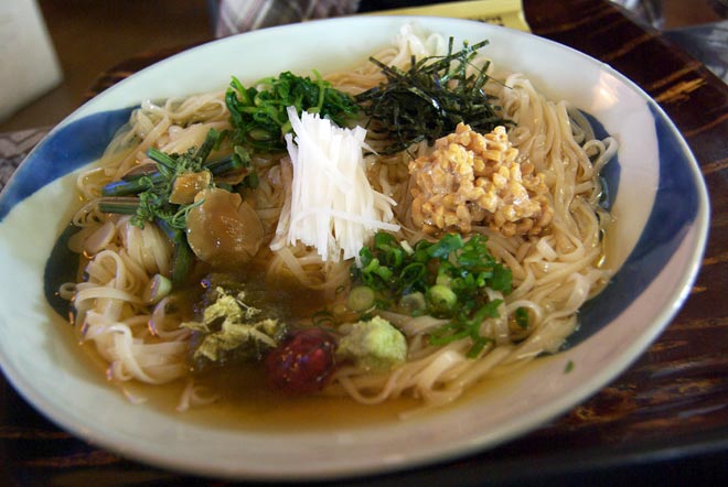 みょうが、梅肉、ゆば、ねぎ、おろしわさびなどで、さっぱりいただけるもの。