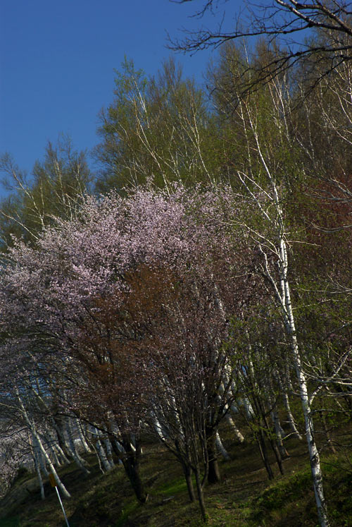 青空と白樺のいろあいがいい感じです。 そしてほのかなピンク色が。