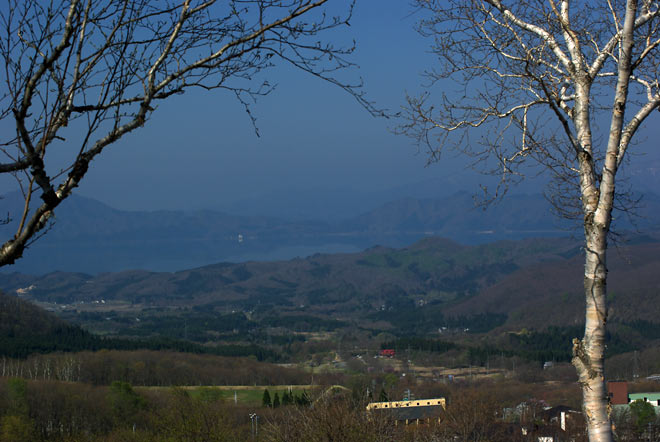 田沢湖が見えます。 ちょっと空気がかすんでしまっているのは残念ですが。