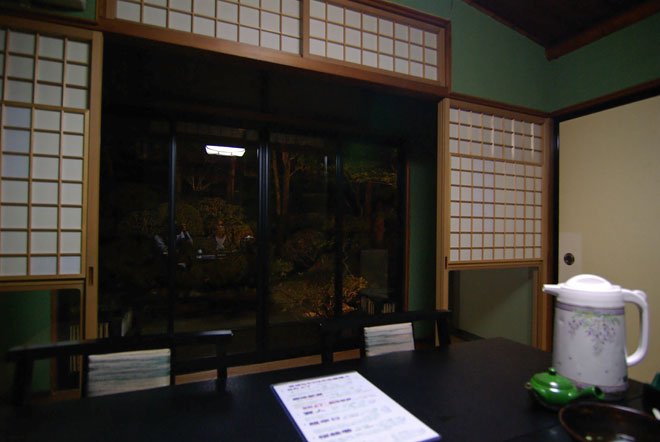 案内された個室は、並んで座る、ちょっと珍しいスタイルで、椅子とテーブルで和室というスタイル。