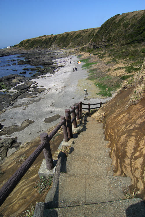 階段にのぼって上から見下ろすとこんな海岸です。 夏はすごいのかな? もしかして。。