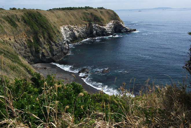 この海岸の奥の方に海鳥の生息地があるそうです。