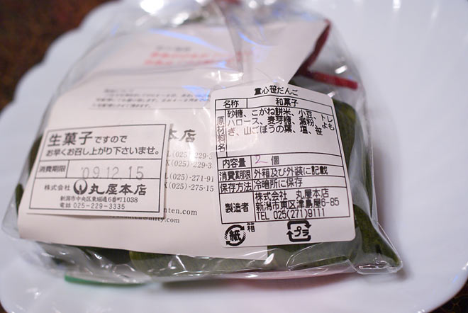 丸屋本店のは、餅米「こがねもち」を、よもぎは無農薬のもの。数日たって固くなったら、蒸したり電子レンジなどで、と。