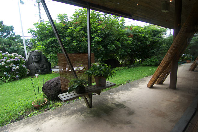 バスの運転手のかたによると、奥様が新島の出身だとかで新島名産の岩で作ったそうです。