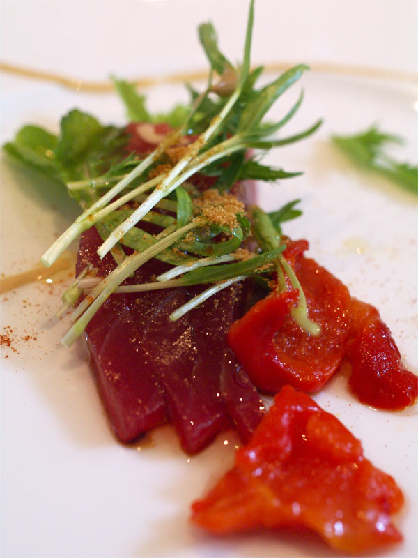 からすみのパウダー。 赤パプリカを添えて。 特に普通、、といった味わいで。