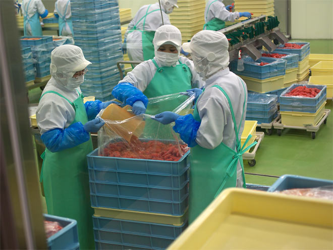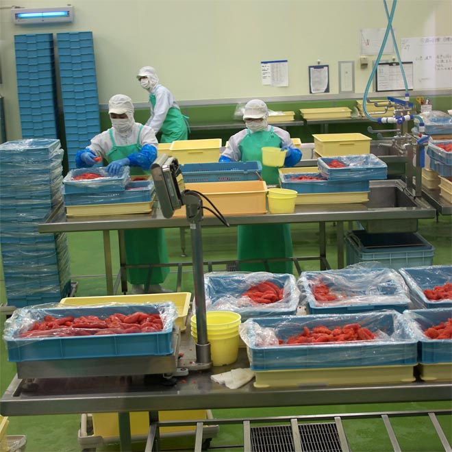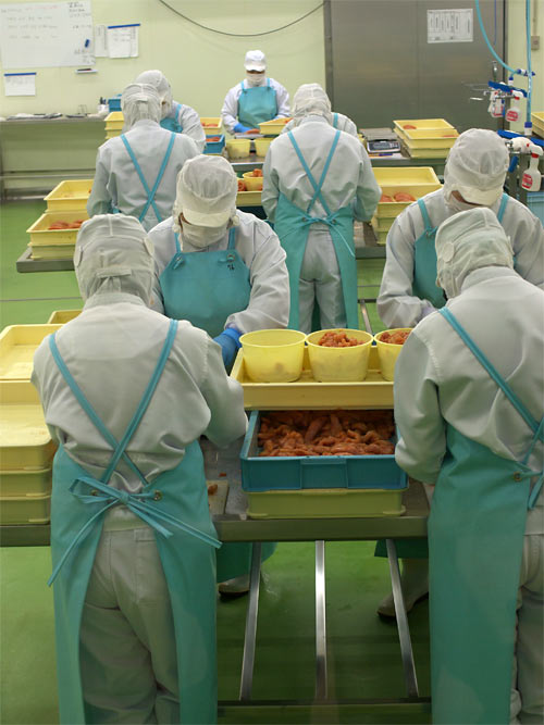 以下、工場の様子を。。 こういうのを見ると食べる気が・・