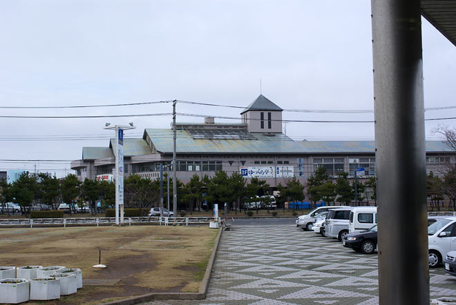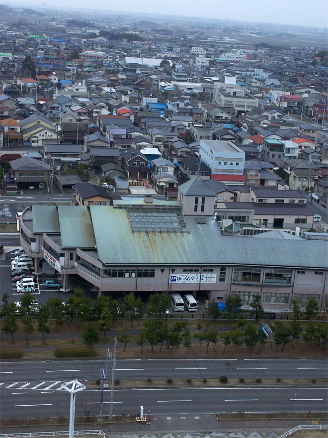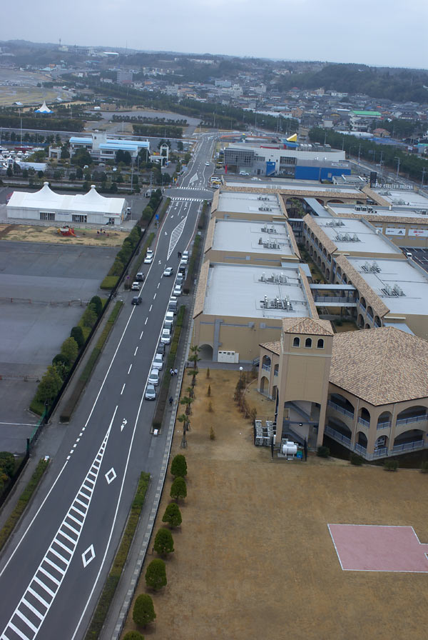 入り口で見たスパ施設と奥が大洗市街と大洗駅方面。
