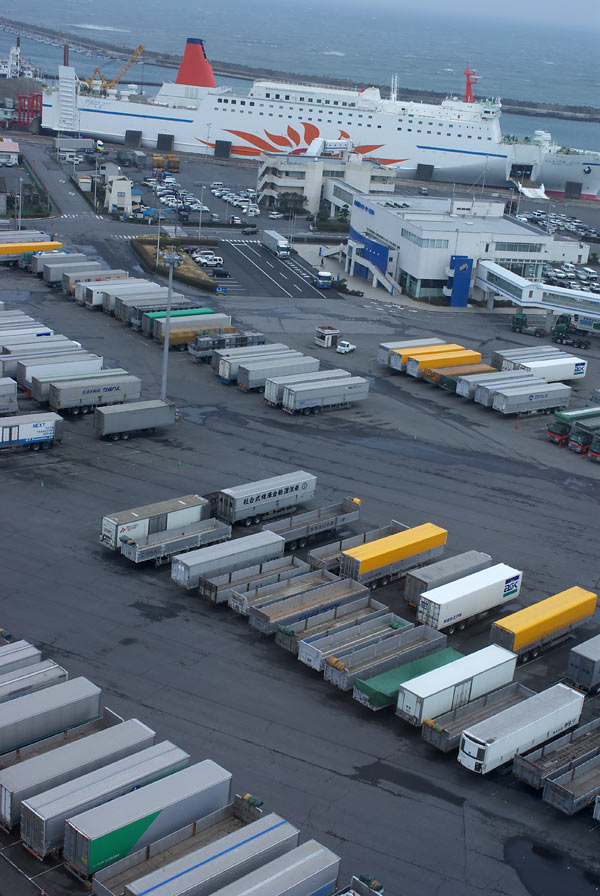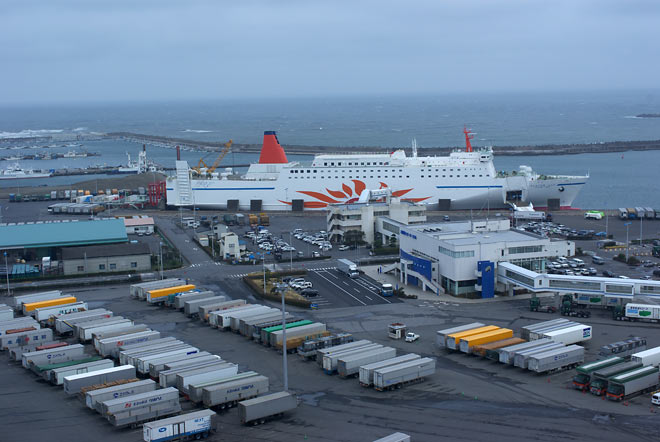 目の前にはフェリーが。 北海道の苫小牧に行く”さんふらわあ”だと思いますが・・・