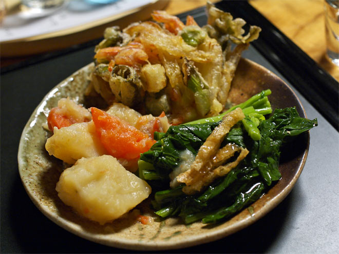 人参、長ネギなど。 油っぽさも控えめで、ねぎと人参の優しい味わいが熱燗によくあいます。