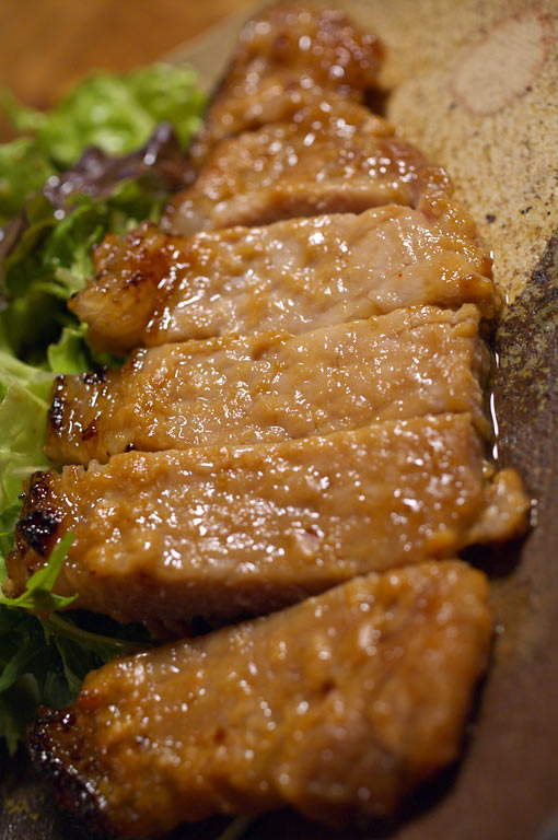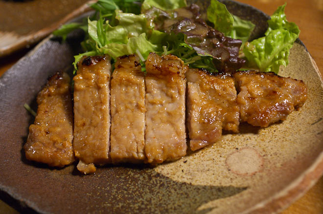 無菌豚のロース肉を、こちらの酒粕と「手前味噌」で漬けた一皿。