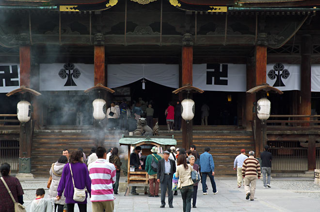 人が少ないときを見計らって、山門をちょっと遠景から。