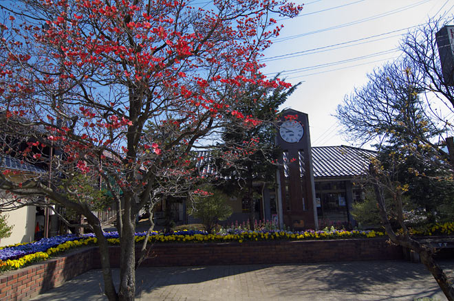 こちらも駅舎。 手前は喫茶店のようですが、まだこの時間はやってません。