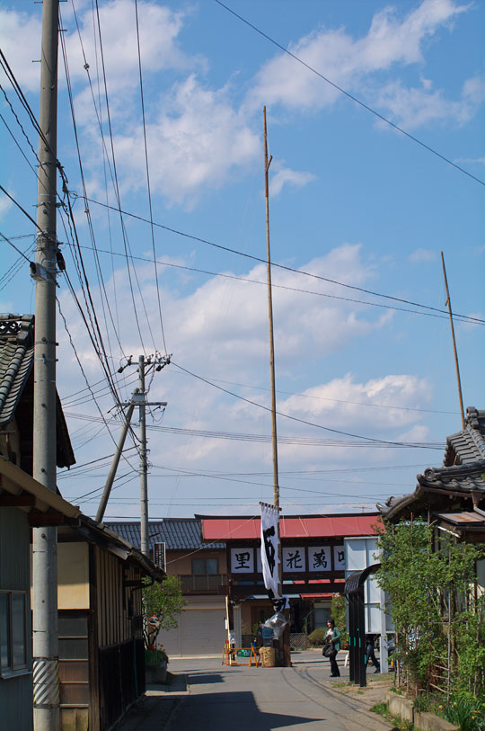 お祭りの準備だそうです。 諏訪の有名な御柱祭の町版だそうで。