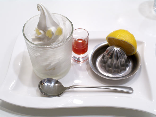 ソフトのトッピングはハチミツ漬けのレモンスライス。
