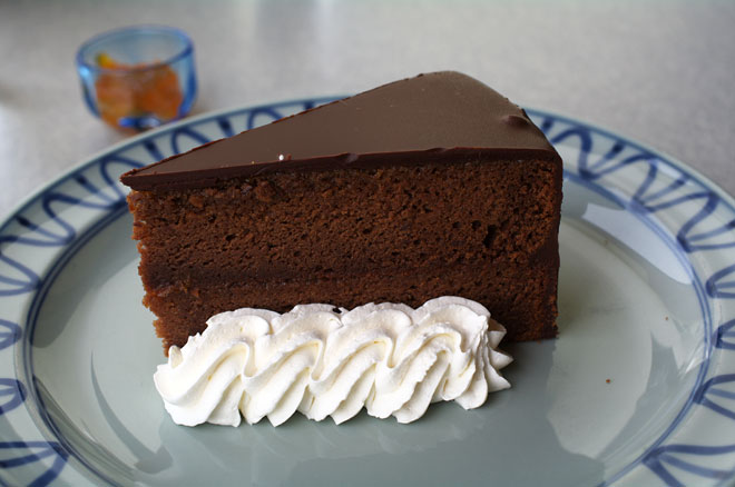 ザッハトルテ、、というよりはチョコレートケーキといった趣き。