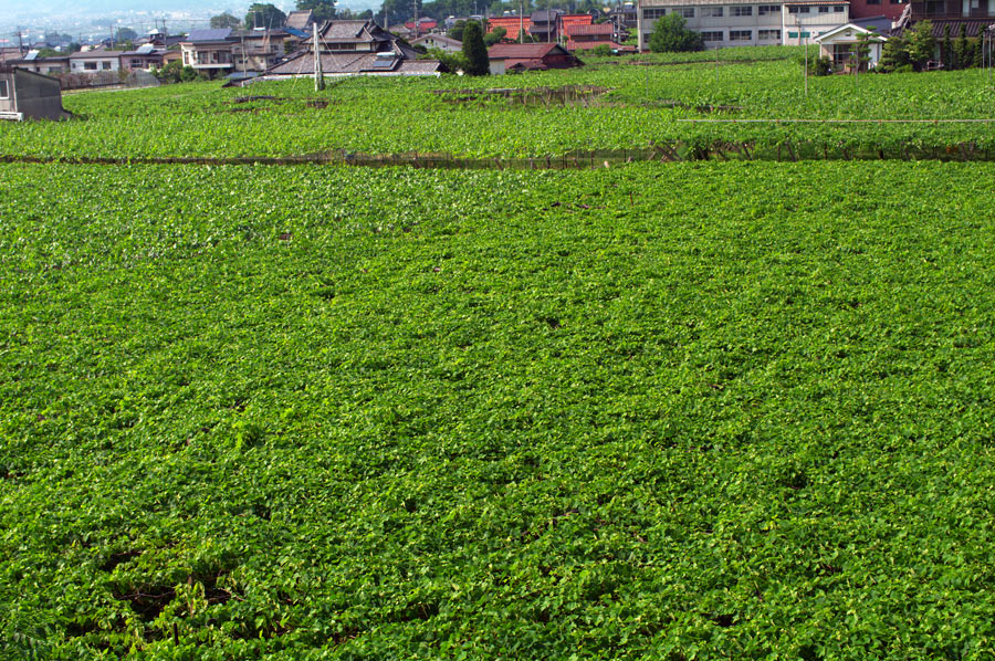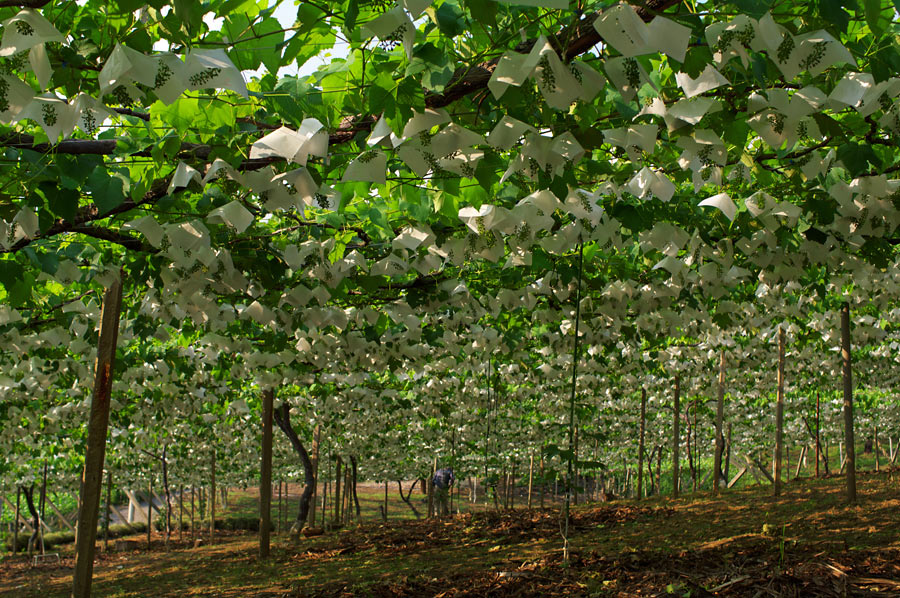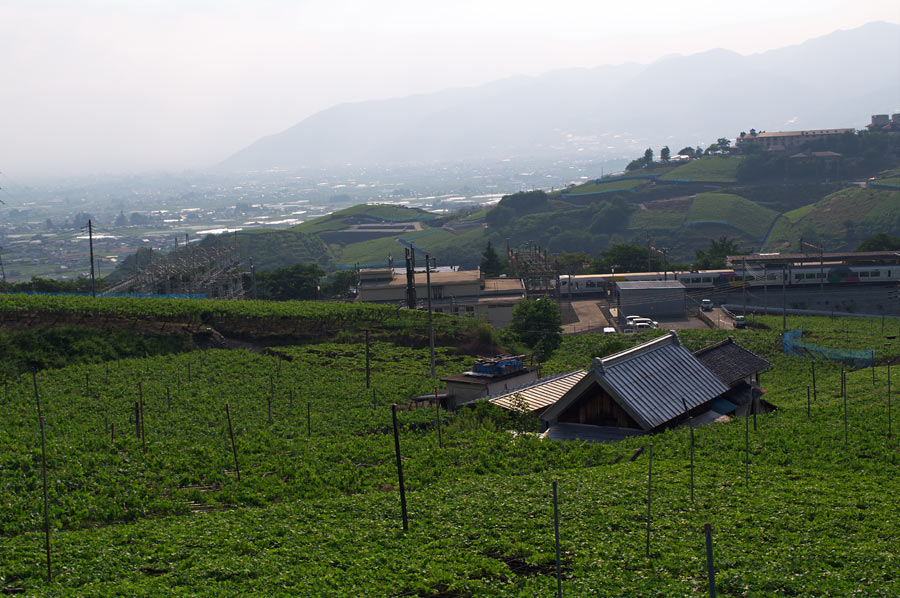 こちらはお昼から駅までとぼとぼ歩いている最中のカットから。 一面葡萄棚です。