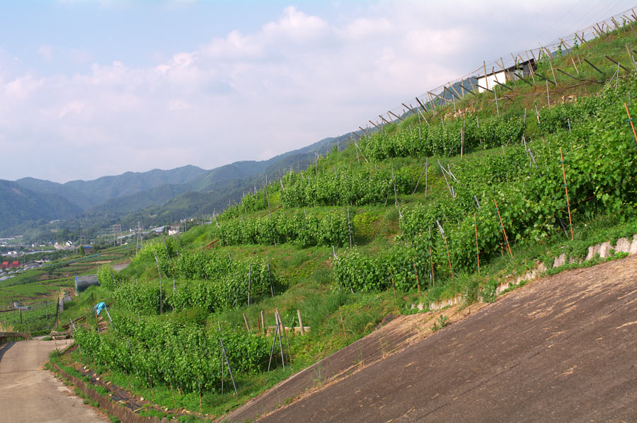急な斜面ですし、日当たりもよさそうなので、美味しそうな葡萄が実りそうな立地です。