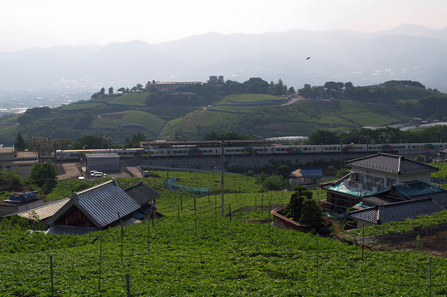 位置関係が明確になるカットですね。 手前に駅。 奥にはぶどうの丘が。