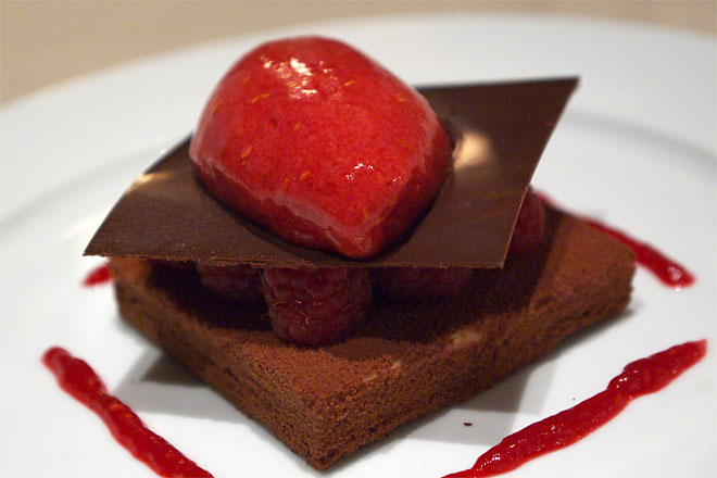 チョコとフランボワーズのケーキだが、、かなりフツウ。