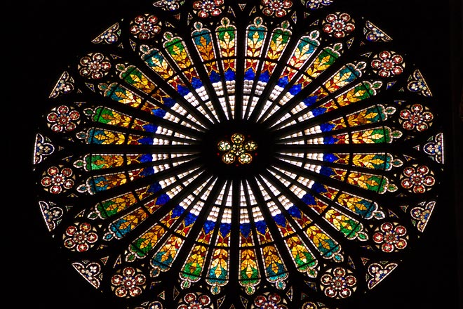 こちらは正面のステンドグラス。