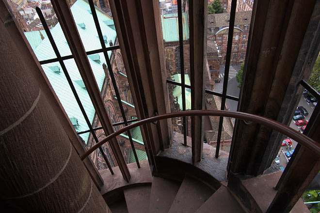 らせん階段をどんどん上に。 写真もほぼ同じ位置で、高さのみ違う感じ。