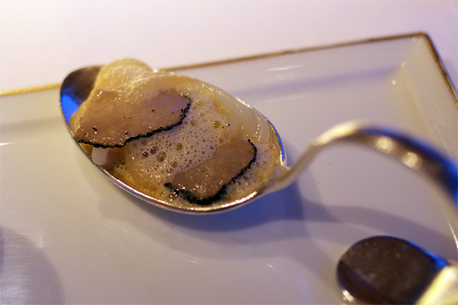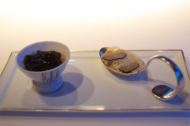 黒はもちろん冬トリュフ。 松の実を使ったリゾット仕立て。 松の実はかなり火が入っているようで、柔らかい。