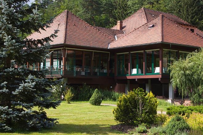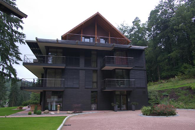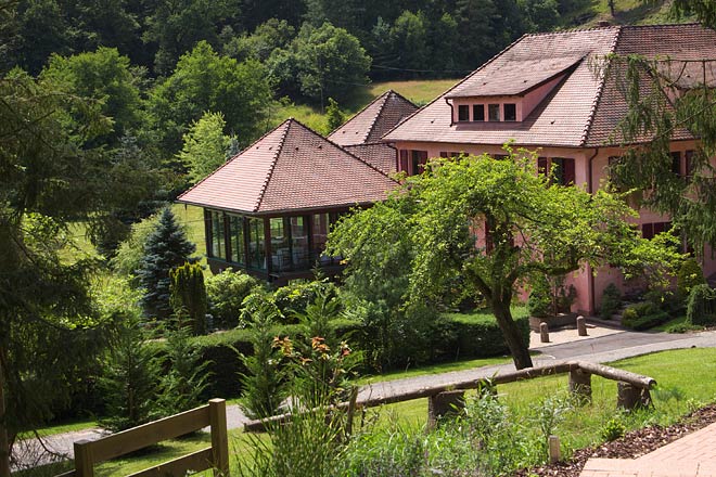 ホテルの全景。 右下に入り口があります。 左側がテラス。 右側はただの山。
