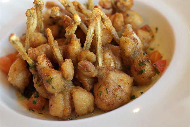 ニンニクを少しきかせて、こんがり揚がったグルヌイユにどんぴしゃりの相性。